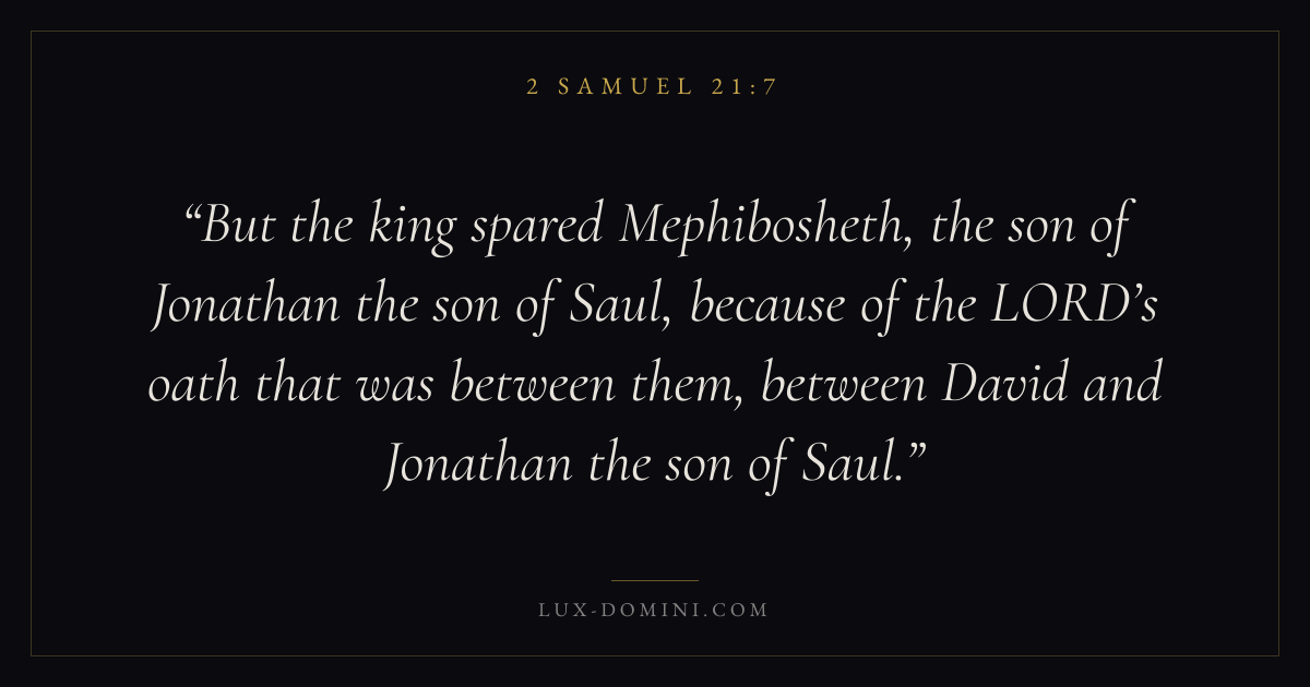 But the king spared Mephibosheth, the son of Jonathan the son of Saul, because of the LORD’s oath that was between them, between David and Jonathan the son of Saul.