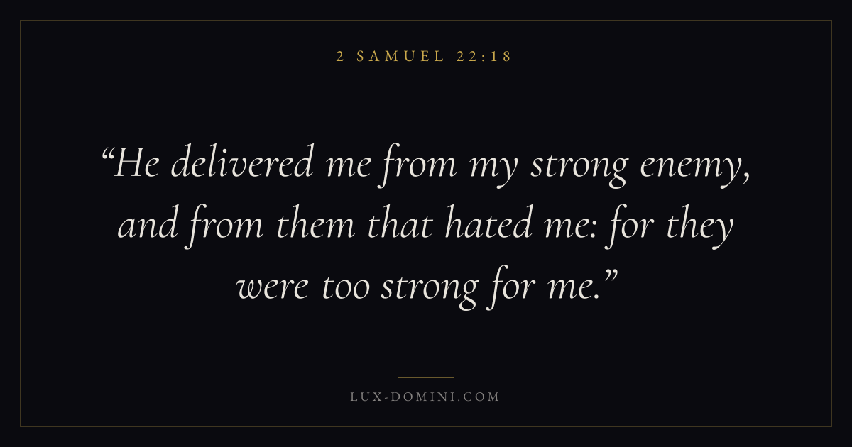 He delivered me from my strong enemy, and from them that hated me: for they were too strong for me.