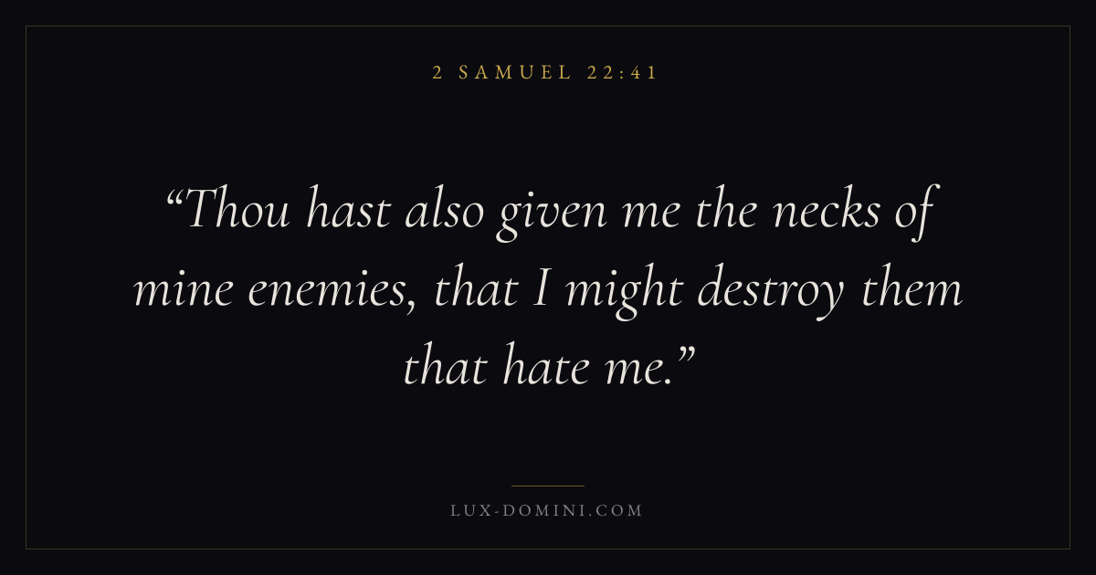 Thou hast also given me the necks of mine enemies, that I might destroy them that hate me.