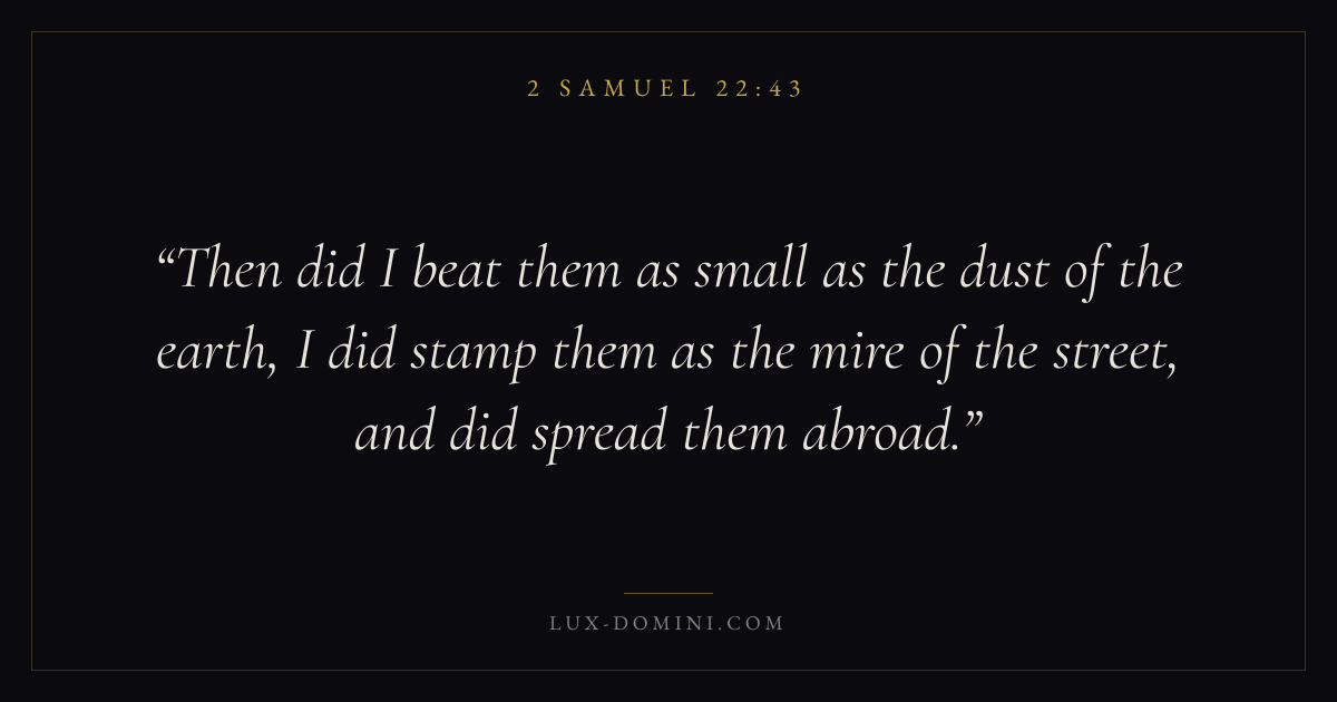 Then did I beat them as small as the dust of the earth, I did stamp them as the mire of the street, and did spread them abroad.