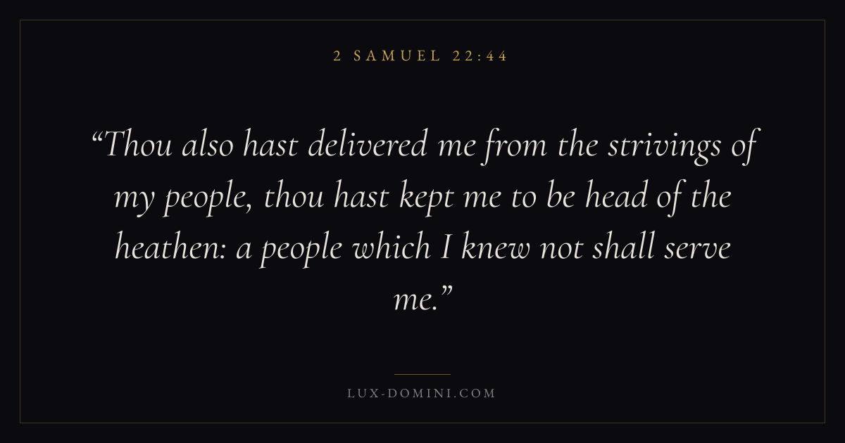 Thou also hast delivered me from the strivings of my people, thou hast kept me to be head of the heathen: a people which I knew not shall serve me.