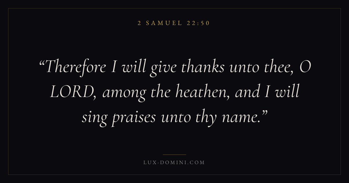 Therefore I will give thanks unto thee, O LORD, among the heathen, and I will sing praises unto thy name.