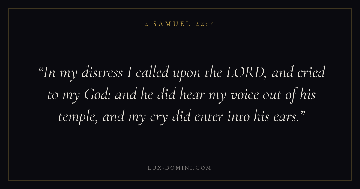 In my distress I called upon the LORD, and cried to my God: and he did hear my voice out of his temple, and my cry did enter into his ears.
