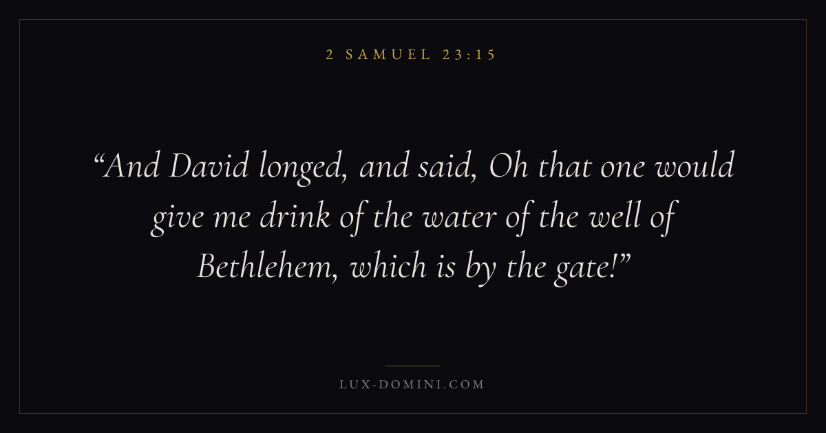 And David longed, and said, Oh that one would give me drink of the water of the well of Bethlehem, which is by the gate!