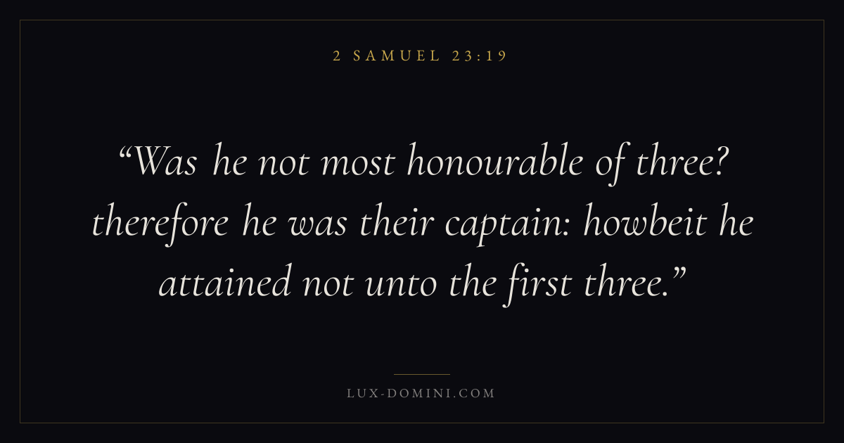 Was he not most honourable of three? therefore he was their captain: howbeit he attained not unto the first three.