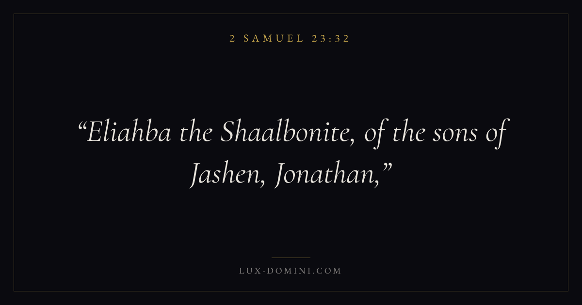 Eliahba the Shaalbonite, of the sons of Jashen, Jonathan,