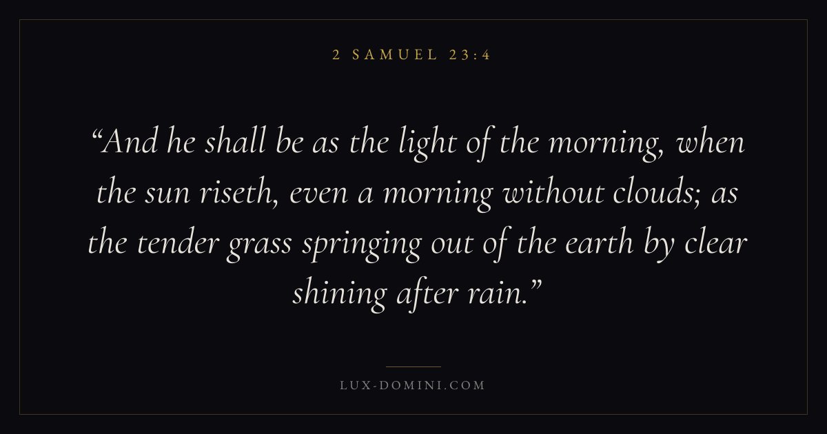 And he shall be as the light of the morning, when the sun riseth, even a morning without clouds; as the tender grass springing out of the earth by clear shining after rain.
