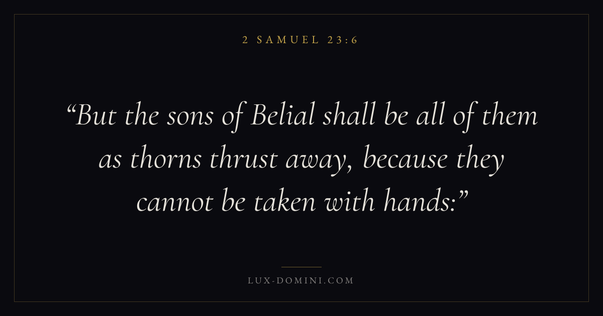 But the sons of Belial shall be all of them as thorns thrust away, because they cannot be taken with hands: