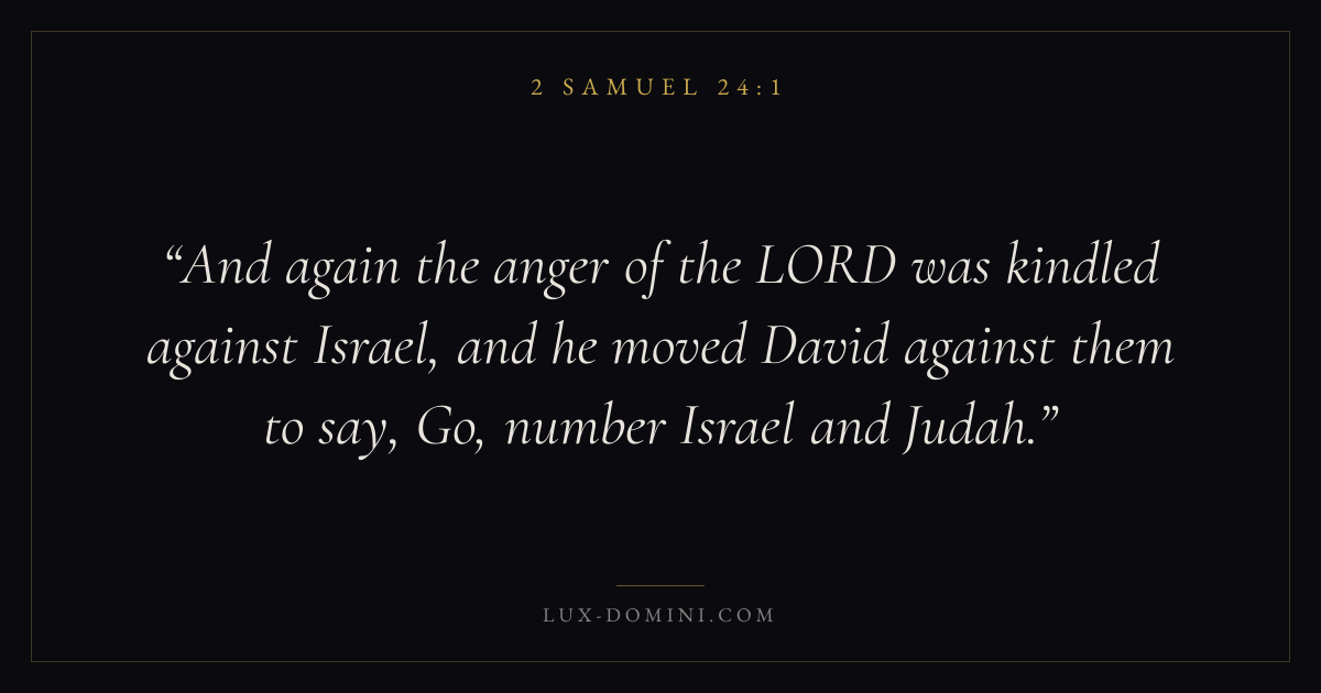 And again the anger of the LORD was kindled against Israel, and he moved David against them to say, Go, number Israel and Judah.