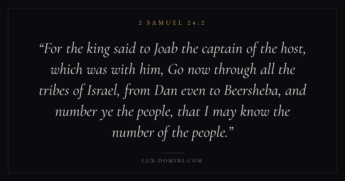 For the king said to Joab the captain of the host, which was with him, Go now through all the tribes of Israel, from Dan even to Beersheba, and number ye the people, that I may know the number of the people.