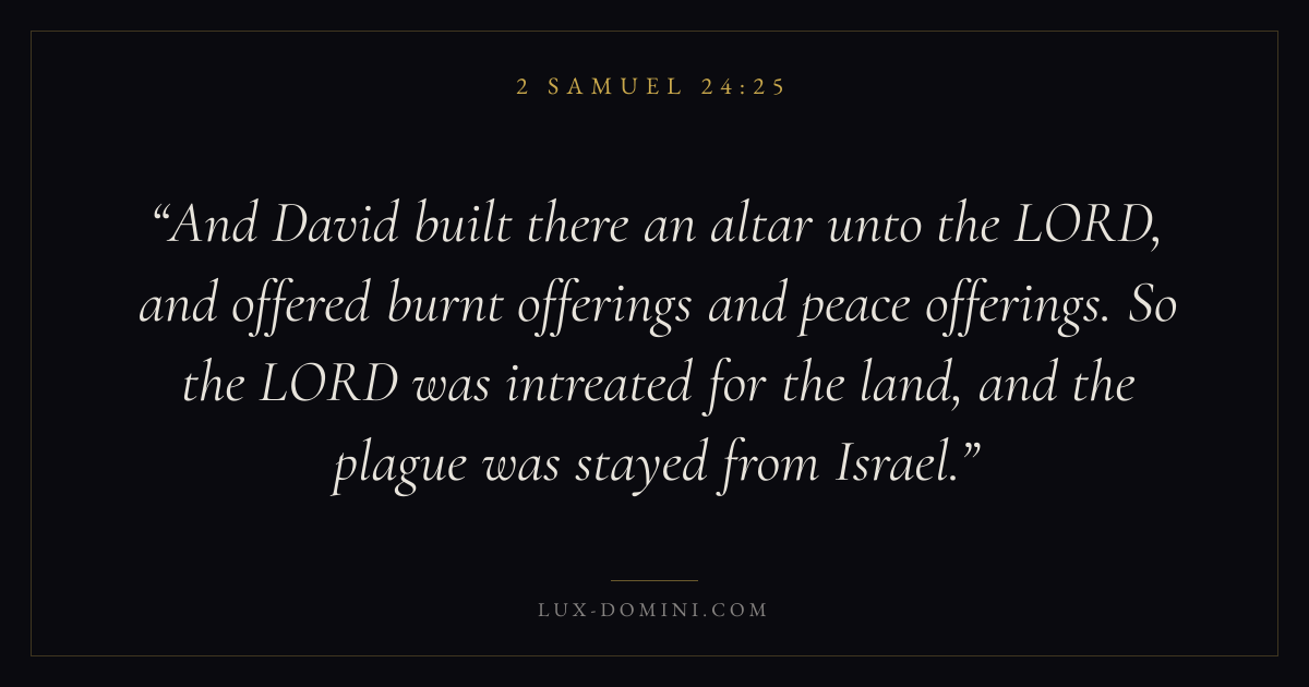 And David built there an altar unto the LORD, and offered burnt offerings and peace offerings. So the LORD was intreated for the land, and the plague was stayed from Israel.