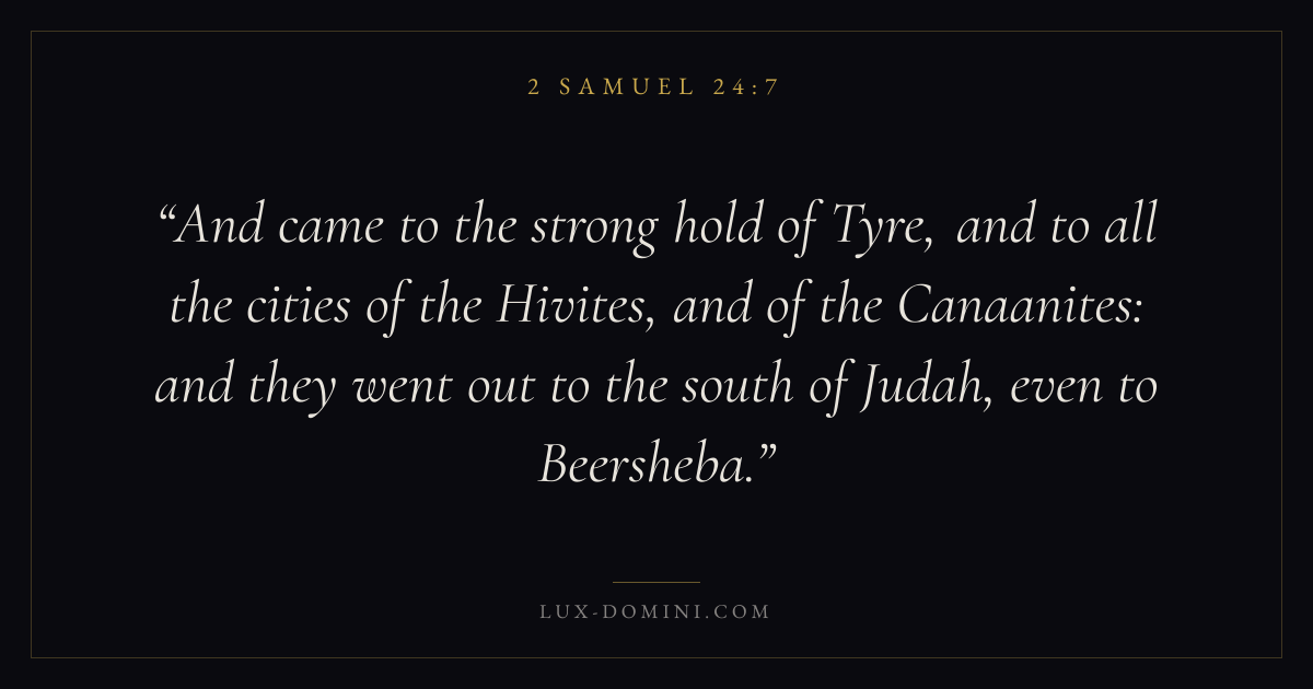 And came to the strong hold of Tyre, and to all the cities of the Hivites, and of the Canaanites: and they went out to the south of Judah, even to Beersheba.