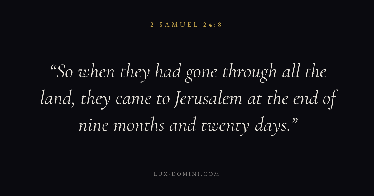 So when they had gone through all the land, they came to Jerusalem at the end of nine months and twenty days.