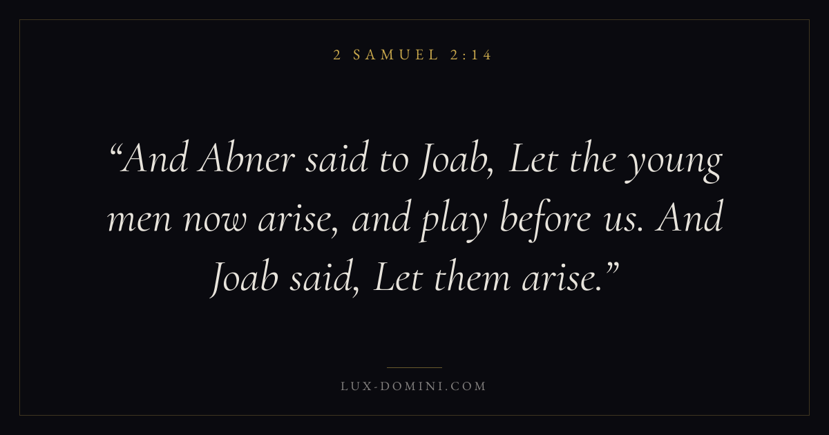 And Abner said to Joab, Let the young men now arise, and play before us. And Joab said, Let them arise.