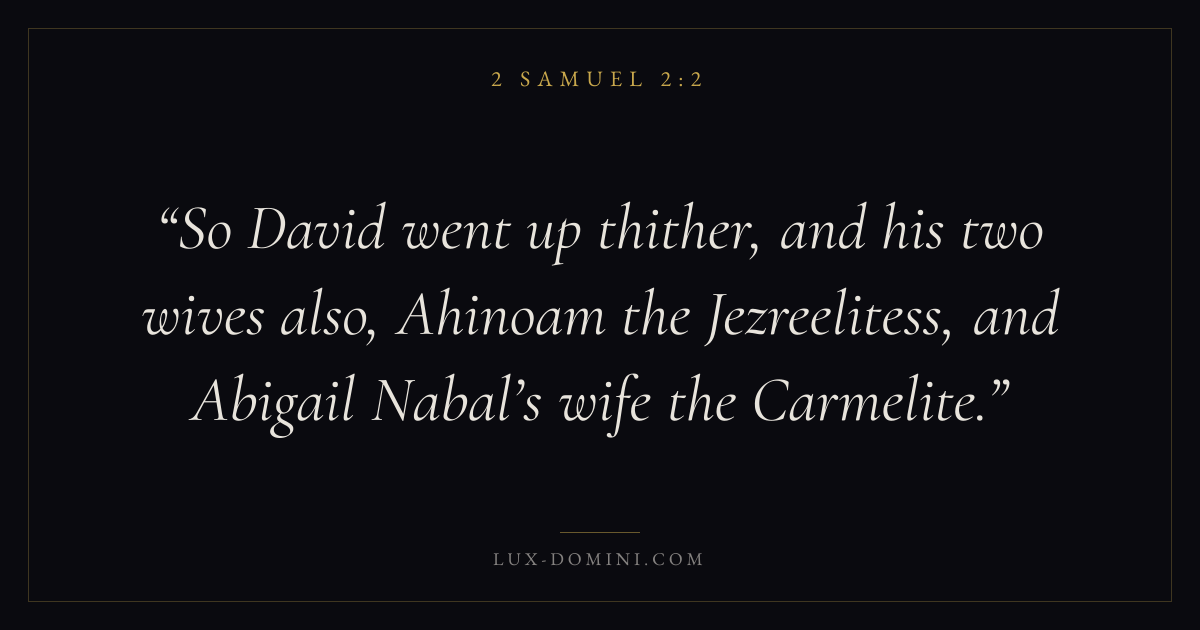 So David went up thither, and his two wives also, Ahinoam the Jezreelitess, and Abigail Nabal’s wife the Carmelite.