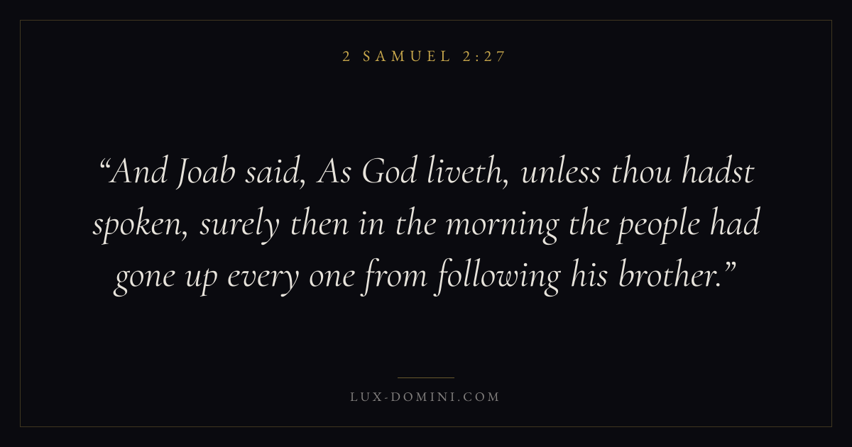 And Joab said, As God liveth, unless thou hadst spoken, surely then in the morning the people had gone up every one from following his brother.
