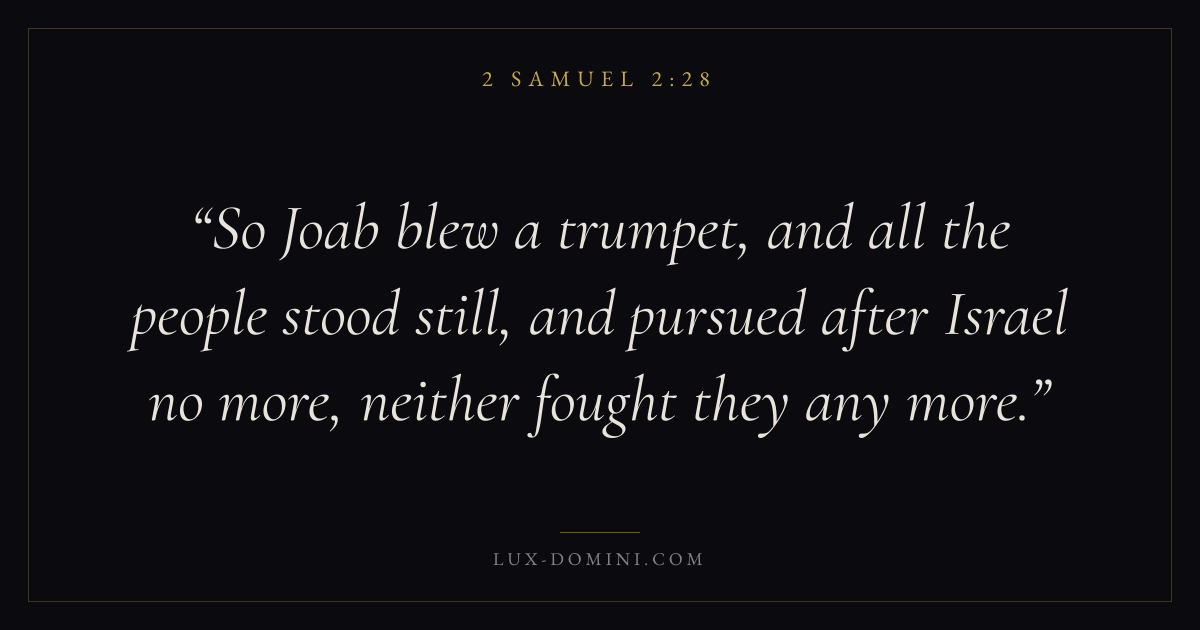 So Joab blew a trumpet, and all the people stood still, and pursued after Israel no more, neither fought they any more.