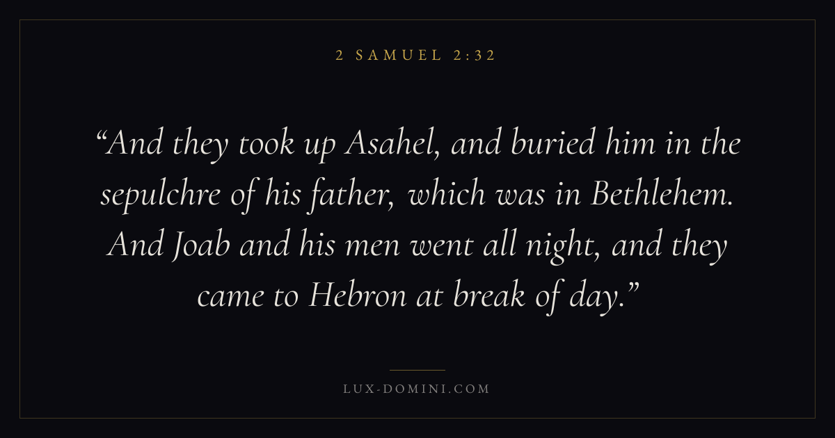And they took up Asahel, and buried him in the sepulchre of his father, which was in Bethlehem. And Joab and his men went all night, and they came to Hebron at break of day.