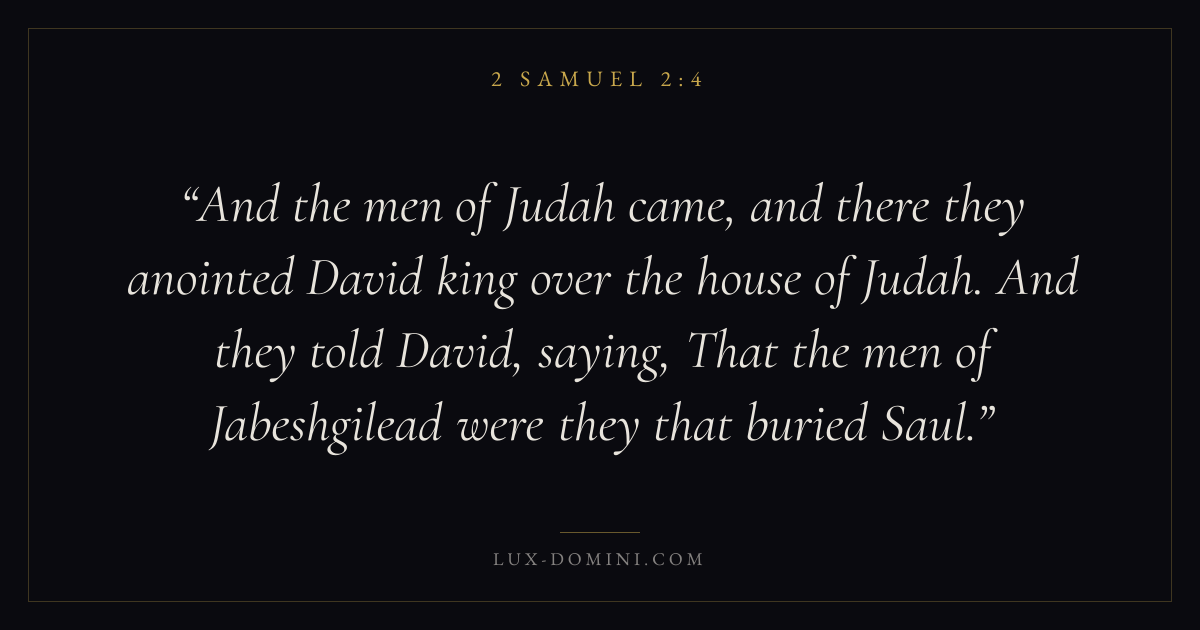 And the men of Judah came, and there they anointed David king over the house of Judah. And they told David, saying, That the men of Jabeshgilead were they that buried Saul.