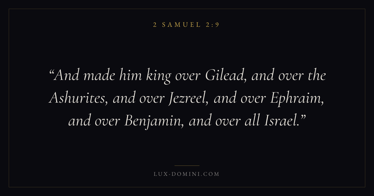 And made him king over Gilead, and over the Ashurites, and over Jezreel, and over Ephraim, and over Benjamin, and over all Israel.