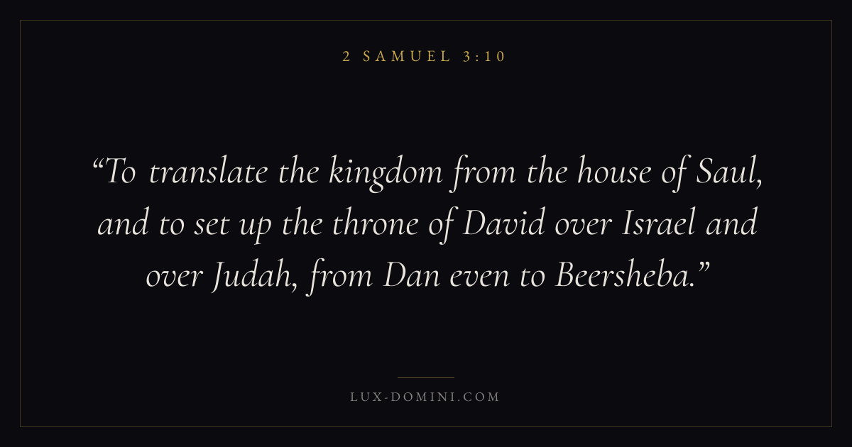 To translate the kingdom from the house of Saul, and to set up the throne of David over Israel and over Judah, from Dan even to Beersheba.