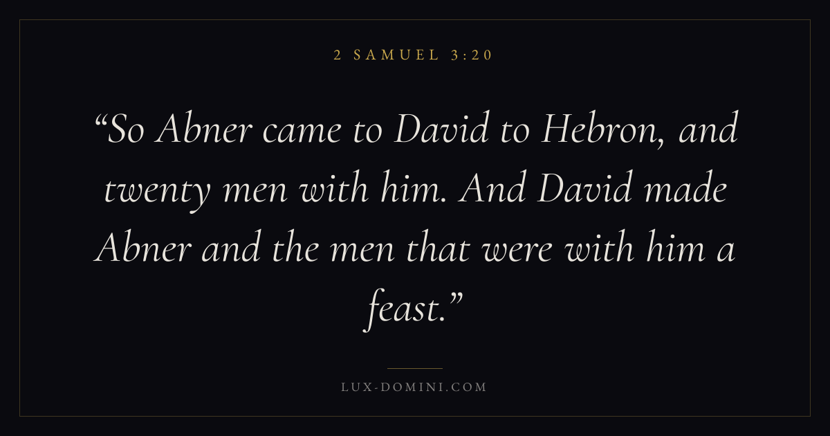 So Abner came to David to Hebron, and twenty men with him. And David made Abner and the men that were with him a feast.