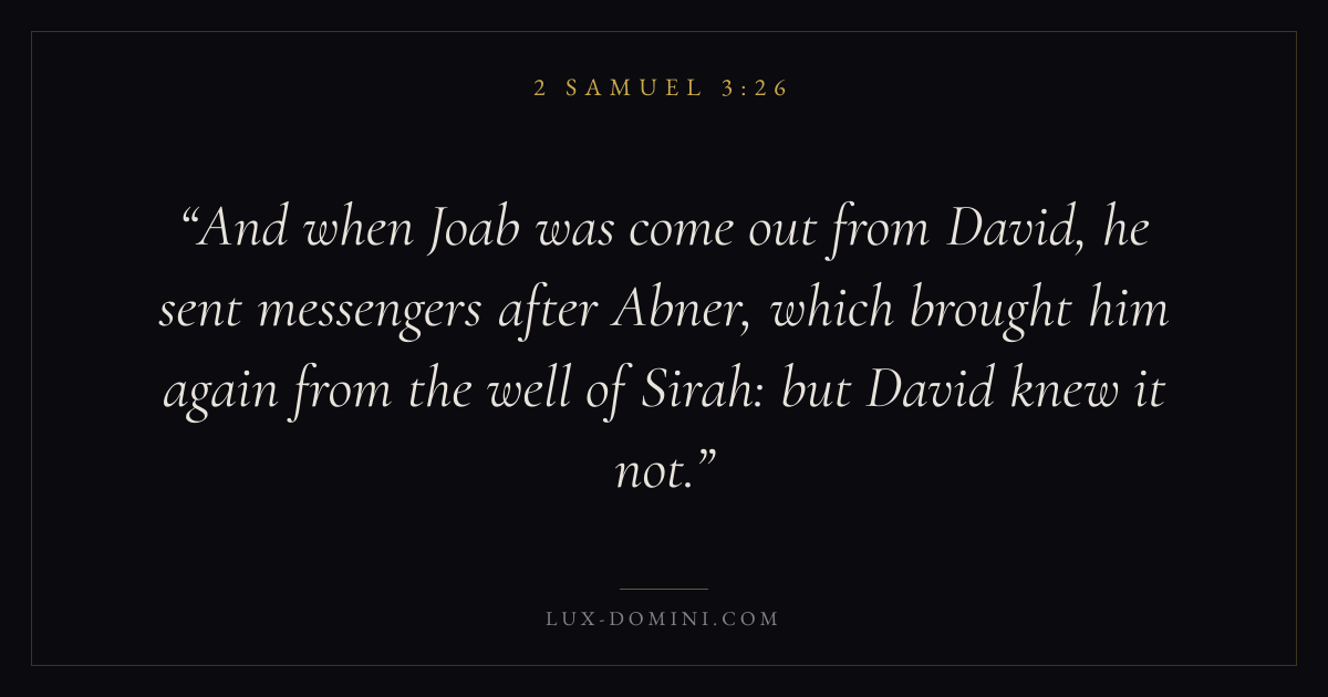 And when Joab was come out from David, he sent messengers after Abner, which brought him again from the well of Sirah: but David knew it not.