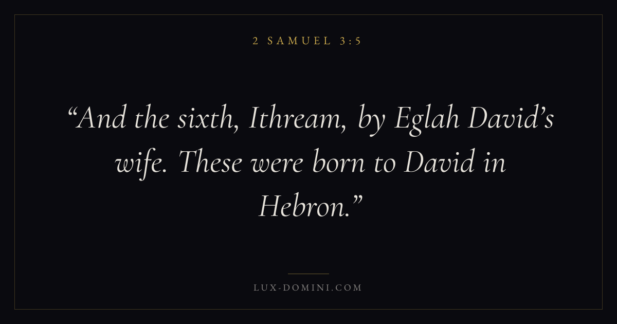 And the sixth, Ithream, by Eglah David’s wife. These were born to David in Hebron.