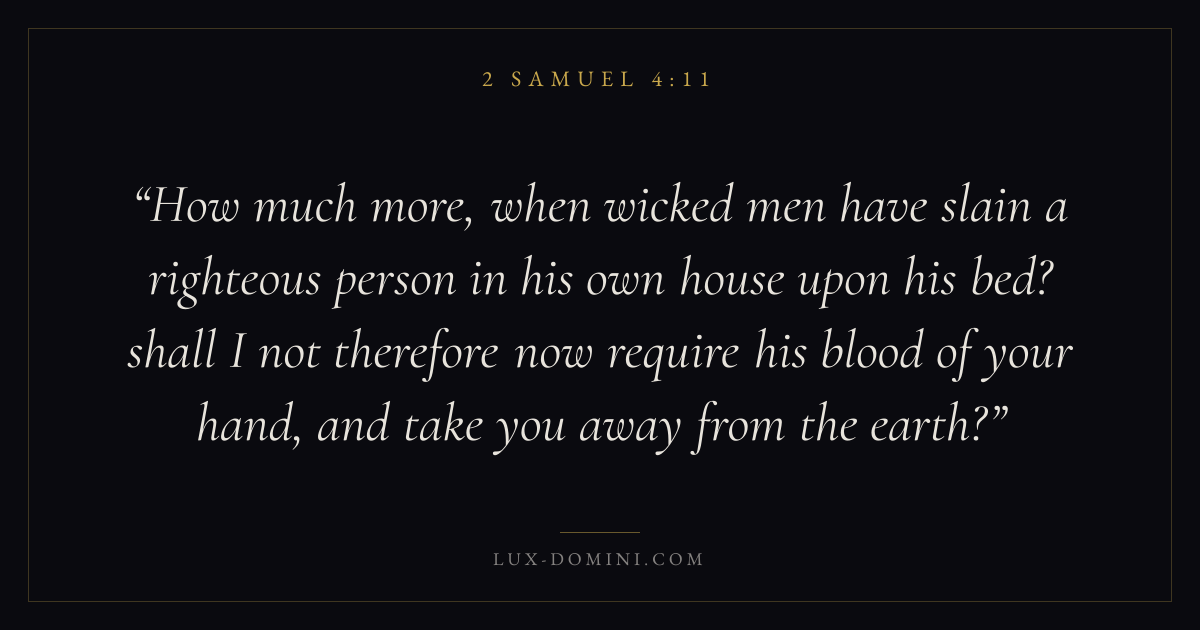 How much more, when wicked men have slain a righteous person in his own house upon his bed? shall I not therefore now require his blood of your hand, and take you away from the earth?