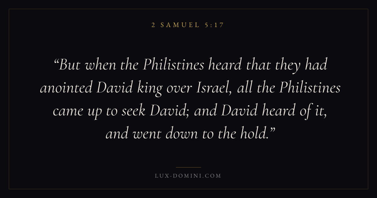 But when the Philistines heard that they had anointed David king over Israel, all the Philistines came up to seek David; and David heard of it, and went down to the hold.