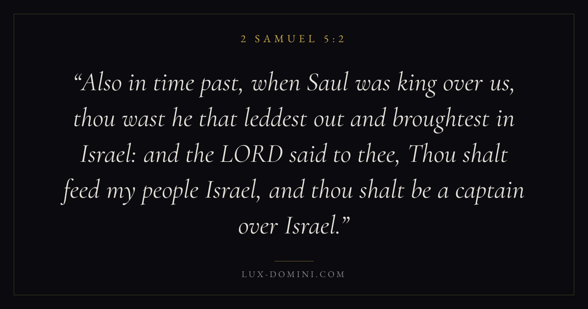 Also in time past, when Saul was king over us, thou wast he that leddest out and broughtest in Israel: and the LORD said to thee, Thou shalt feed my people Israel, and thou shalt be a captain over Israel.