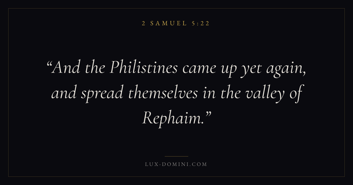 And the Philistines came up yet again, and spread themselves in the valley of Rephaim.