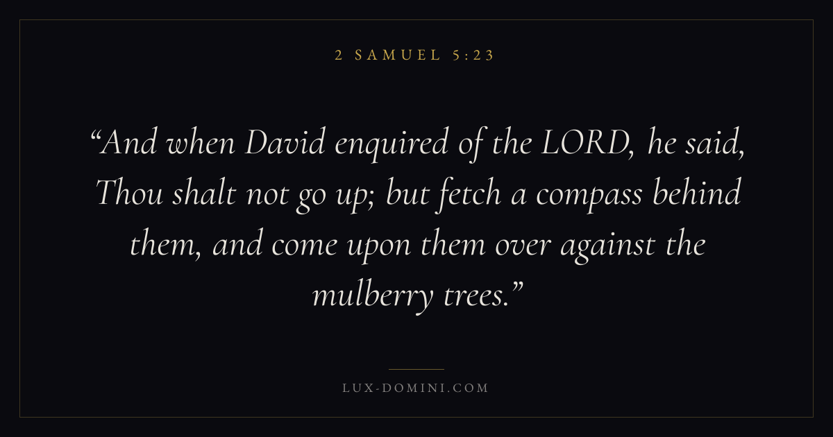 And when David enquired of the LORD, he said, Thou shalt not go up; but fetch a compass behind them, and come upon them over against the mulberry trees.