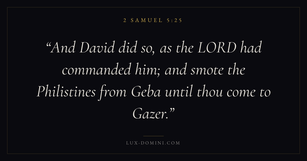 And David did so, as the LORD had commanded him; and smote the Philistines from Geba until thou come to Gazer.