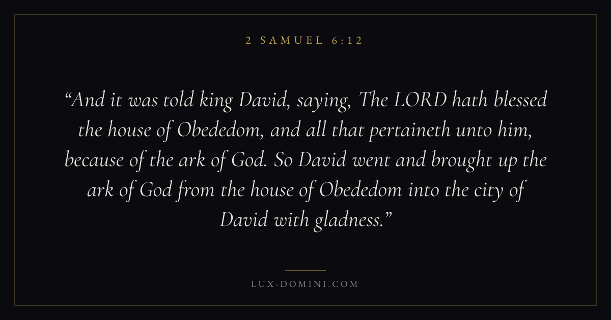 And it was told king David, saying, The LORD hath blessed the house of Obededom, and all that pertaineth unto him, because of the ark of God. So David went and brought up the ark of God from the house of Obededom into the city of David with gladness.