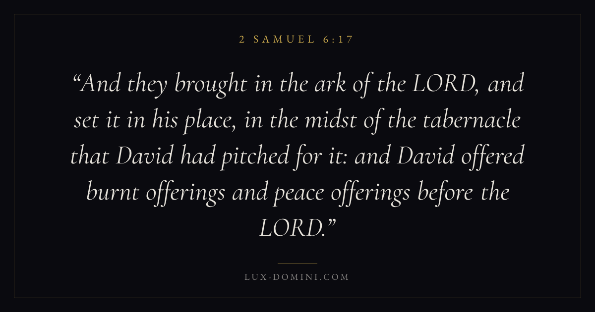 And they brought in the ark of the LORD, and set it in his place, in the midst of the tabernacle that David had pitched for it: and David offered burnt offerings and peace offerings before the LORD.