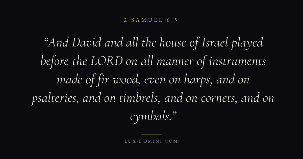 And David and all the house of Israel played before the LORD on all manner of instruments made of fir wood, even on harps, and on psalteries, and on timbrels, and on cornets, and on cymbals.