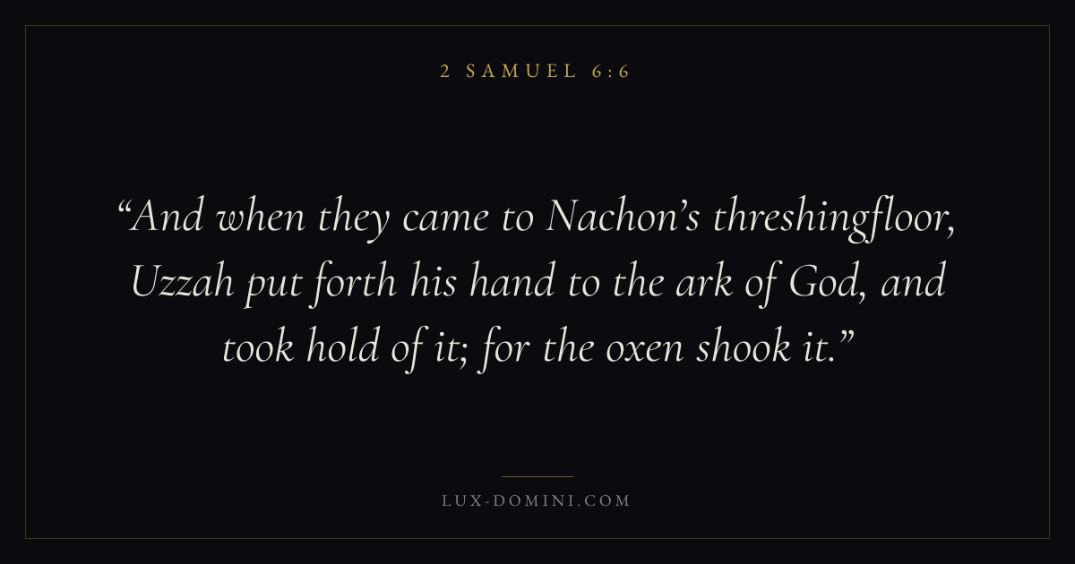 And when they came to Nachon’s threshingfloor, Uzzah put forth his hand to the ark of God, and took hold of it; for the oxen shook it.
