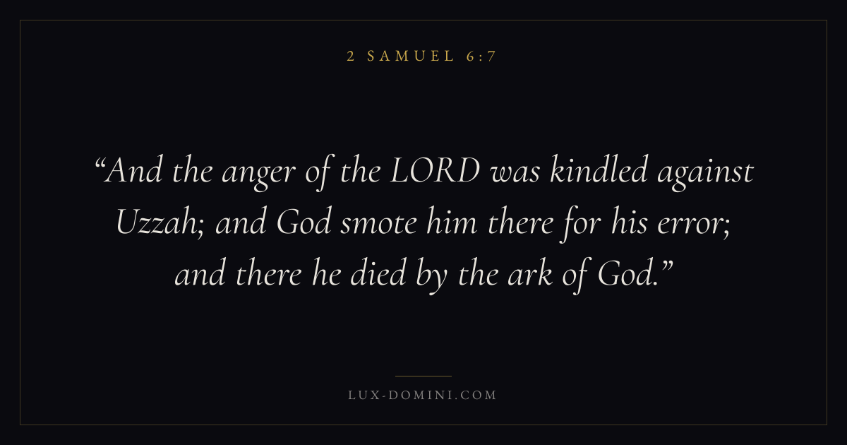 And the anger of the LORD was kindled against Uzzah; and God smote him there for his error; and there he died by the ark of God.