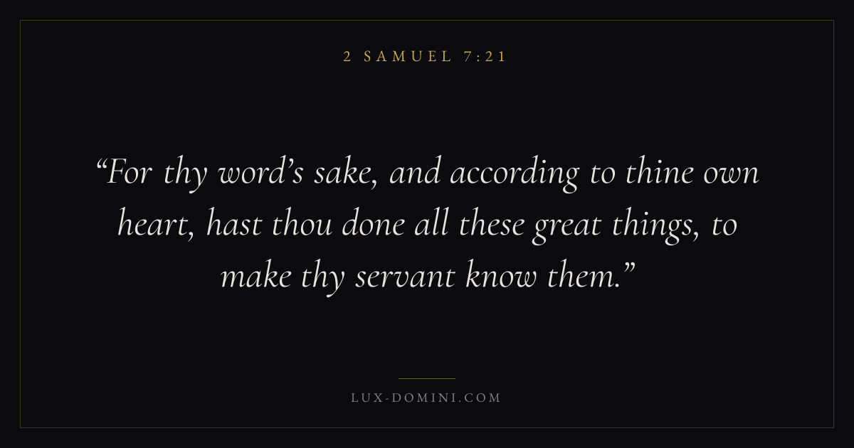 For thy word’s sake, and according to thine own heart, hast thou done all these great things, to make thy servant know them.