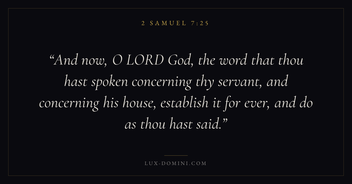 And now, O LORD God, the word that thou hast spoken concerning thy servant, and concerning his house, establish it for ever, and do as thou hast said.
