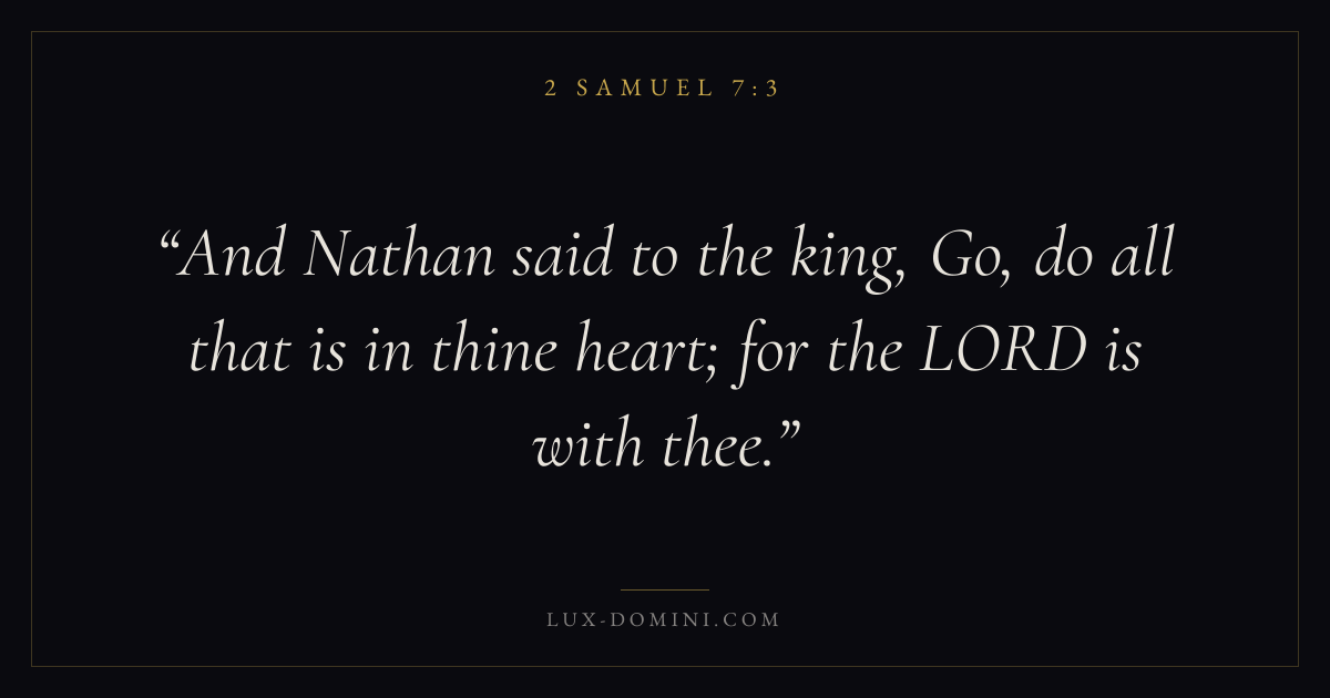 And Nathan said to the king, Go, do all that is in thine heart; for the LORD is with thee.