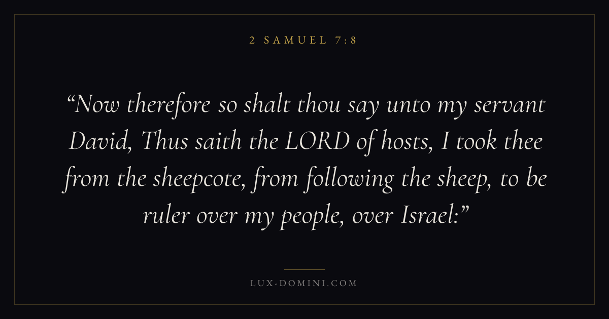Now therefore so shalt thou say unto my servant David, Thus saith the LORD of hosts, I took thee from the sheepcote, from following the sheep, to be ruler over my people, over Israel: