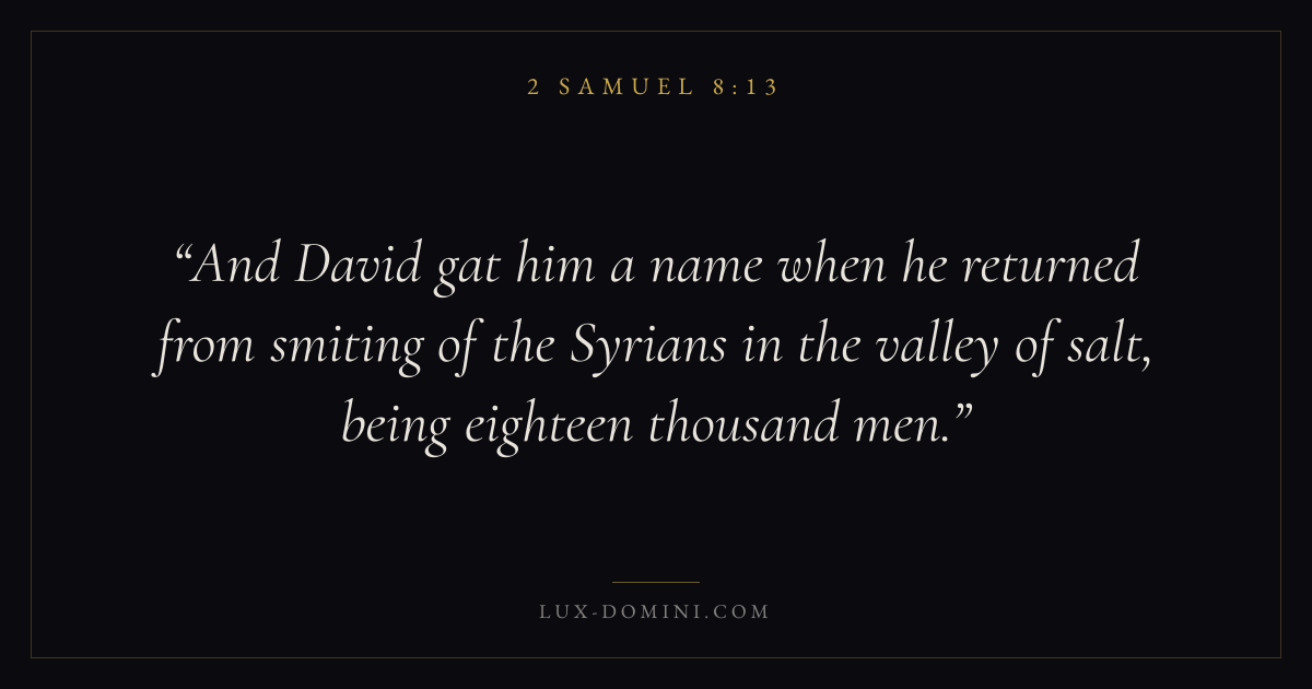 And David gat him a name when he returned from smiting of the Syrians in the valley of salt, being eighteen thousand men.