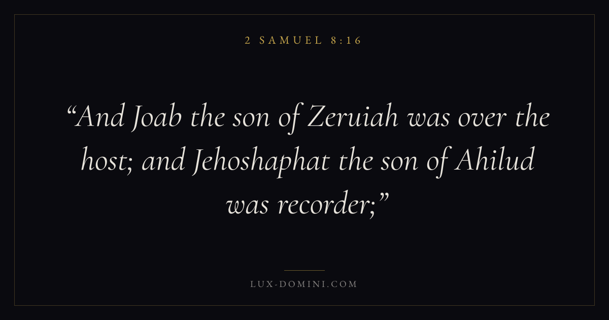 And Joab the son of Zeruiah was over the host; and Jehoshaphat the son of Ahilud was recorder;
