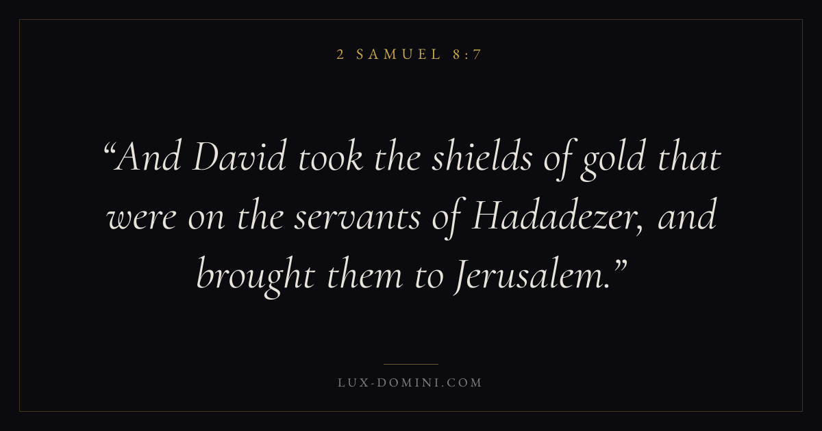 And David took the shields of gold that were on the servants of Hadadezer, and brought them to Jerusalem.