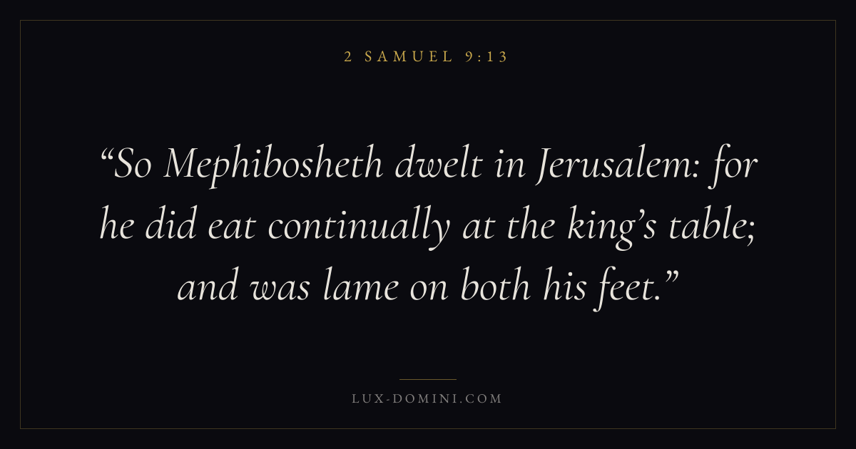 So Mephibosheth dwelt in Jerusalem: for he did eat continually at the king’s table; and was lame on both his feet.