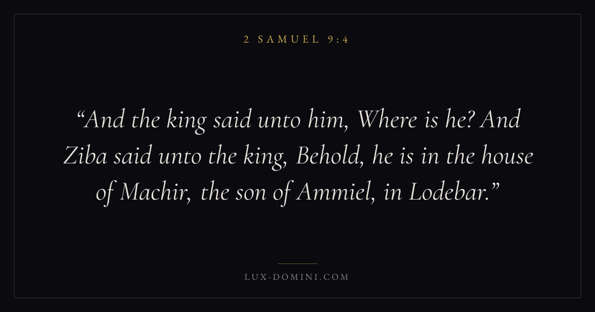 And the king said unto him, Where is he? And Ziba said unto the king, Behold, he is in the house of Machir, the son of Ammiel, in Lodebar.