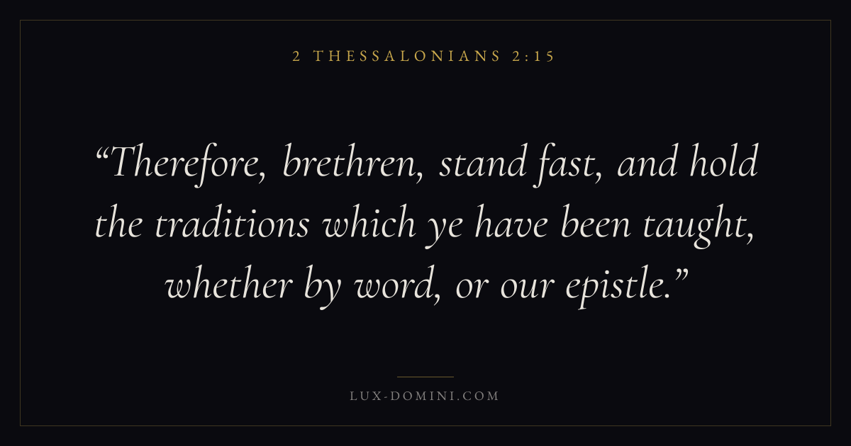 Therefore, brethren, stand fast, and hold the traditions which ye have been taught, whether by word, or our epistle.