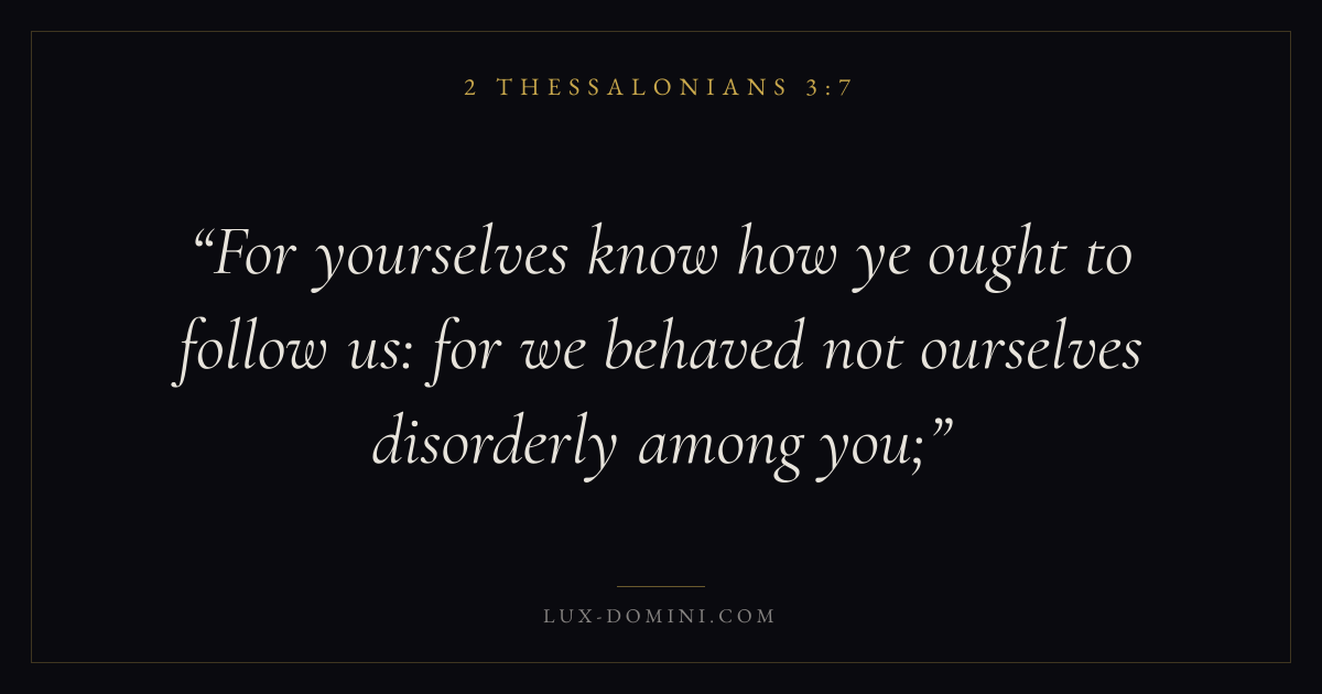 For yourselves know how ye ought to follow us: for we behaved not ourselves disorderly among you;